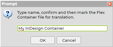 In the new popup, a name for the container can be defined. Please use a clear file name so you can later easily identify the right container in the InDesign plugin.