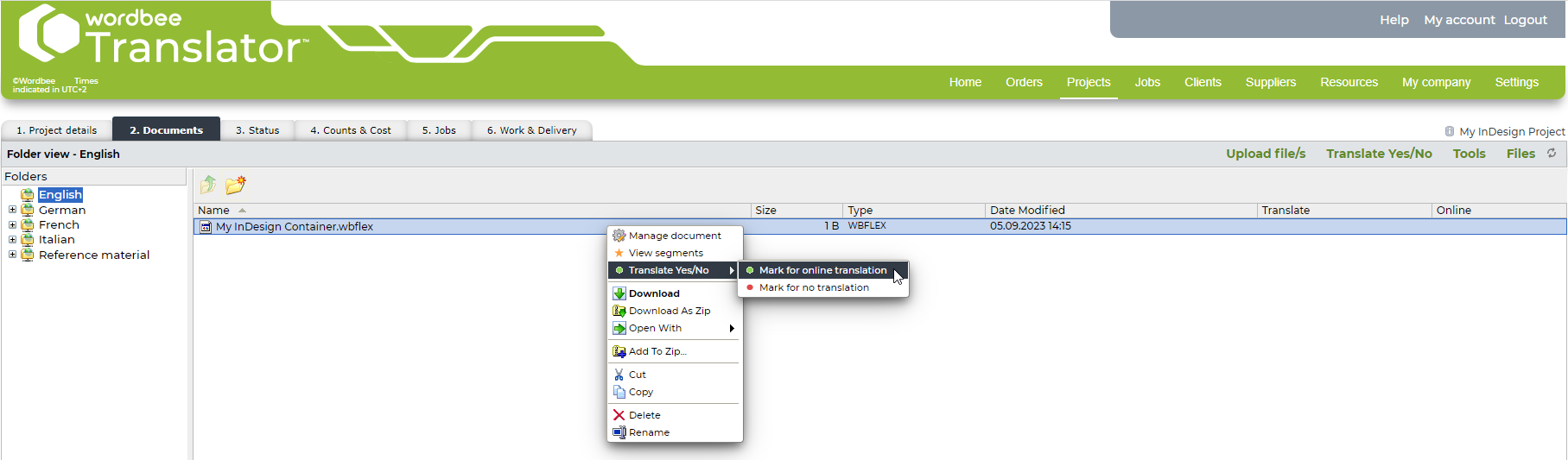 As a last step, the created Flex container needs to be marked for online translation in order to be visible in InDesign.