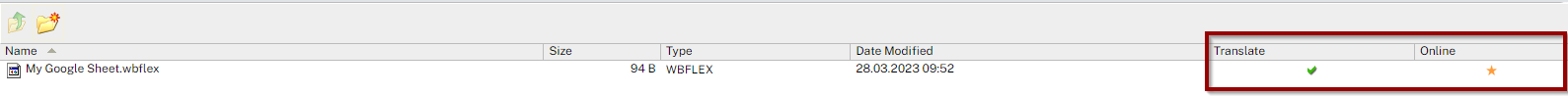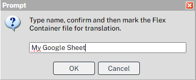 As a last step, the created Flex container needs to be marked for online translation in order to be visible in Google Sheets.