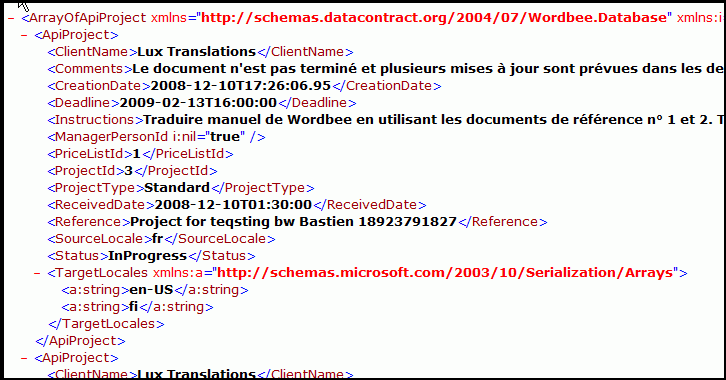 A typical XML result displayed in Microsoft Internet Explorer: