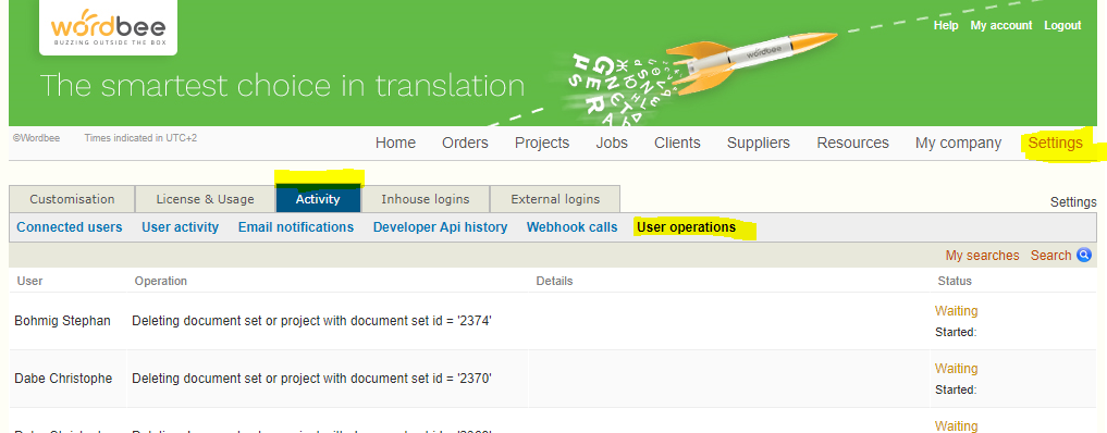 Each Wordbee Translator platform is assigned a maximum number of "slots" for background operations. This is the number of operations that are executed simultaneously. This means that if you submit 100 operations, they will not all start immediately.