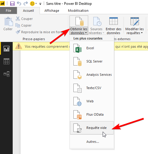 Create a new blank query, go to the header menu and select "New Source > Empty Query"