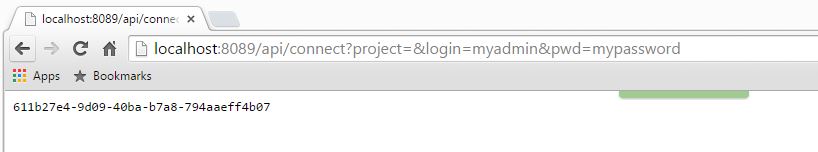 http://localhost:8089/api/connect?project=f167bce4-66d8-4bc1-8ed6-4c9086ae7a46&login=myadmin&pwd=adminpassword