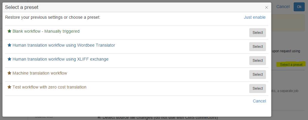 When you edit the settings you can click Select a preset to choose from common automation scenarios: