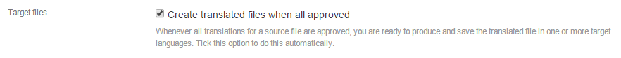 This step is to automatically create and save translated files once all its content (segments) are approved.