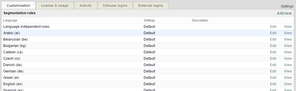 The Beebox uses preset SRX rules to segment text content into sentences and paragraphs.