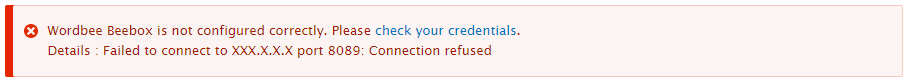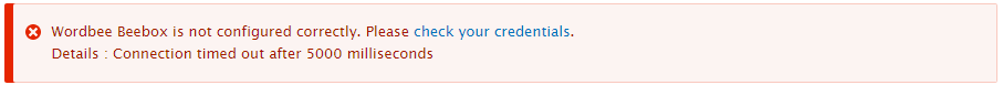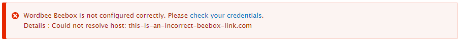 - Check the Beebox URL is correct. If the CMS and the Beebox are not hosted on the same server, make sure you used the public URL of your Beebox.