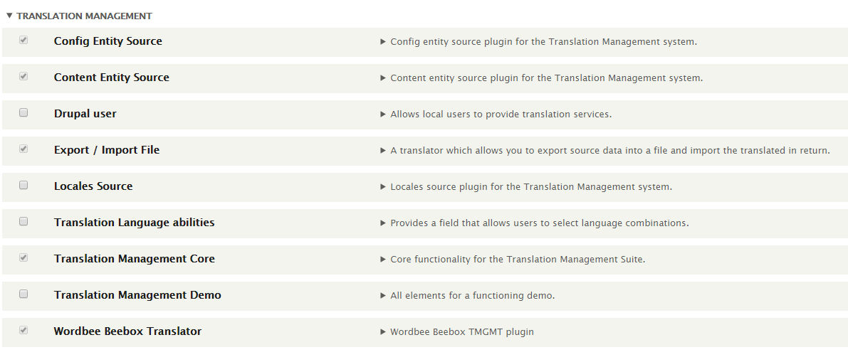 The Beebox Drupal connector needs the TMGMT plugin to work.
