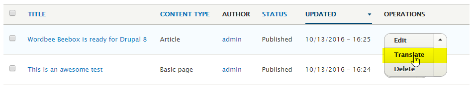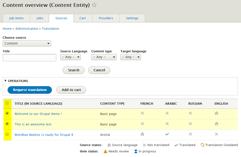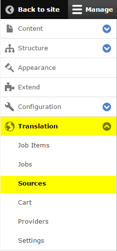 - Go to the TMGMT Sources list. To access it, go first to Translation, then Sources.