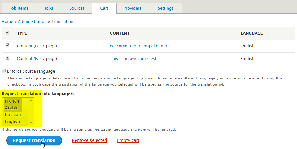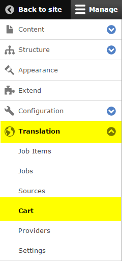 - Go to the TMGMT Cart. To access it, go first to Translation, then Cart.
