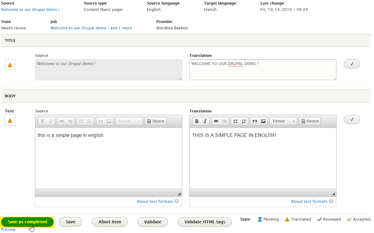 You can automatically accept the translation from Beebox by ticking the option Auto accept finished translations in provider settings.