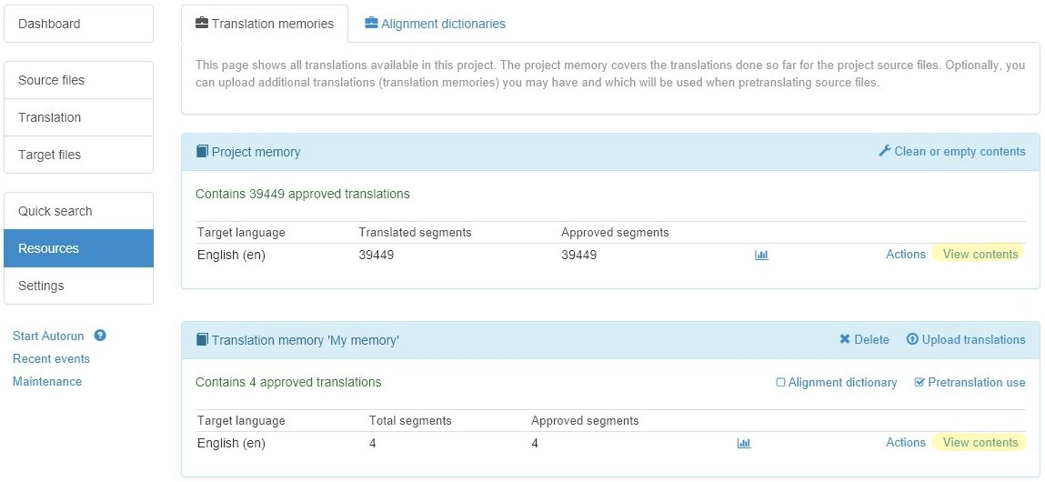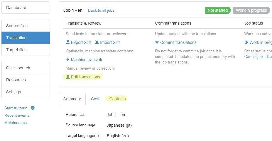 Click Edit translations or, alternatively, Contents to view/edit all the translations in the job.