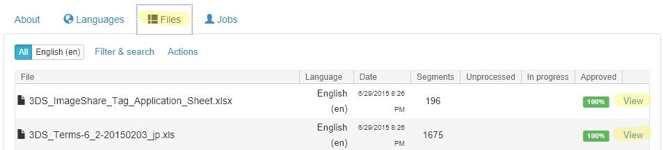 First navigate to a translation job: Click Translation in the project left navigation menu and then the Jobs tab.