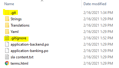 The very first time, the connector will clone the GIT repository to the project’s “in” directory. A number of git-specific files will appear: