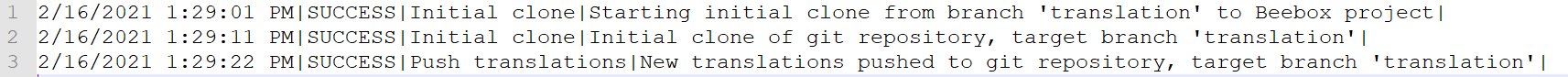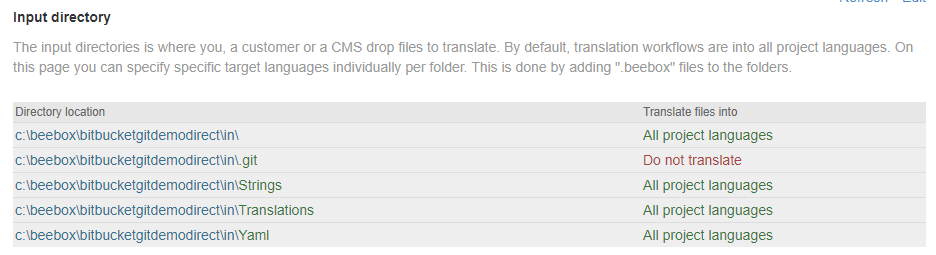 Pulled changes trigger translation workflows as any Beebox project would do with new or changed files showing up in the “in” directory.