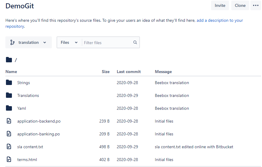 The GIT Beebox extension allows to translate GIT repositories with a Beebox project.