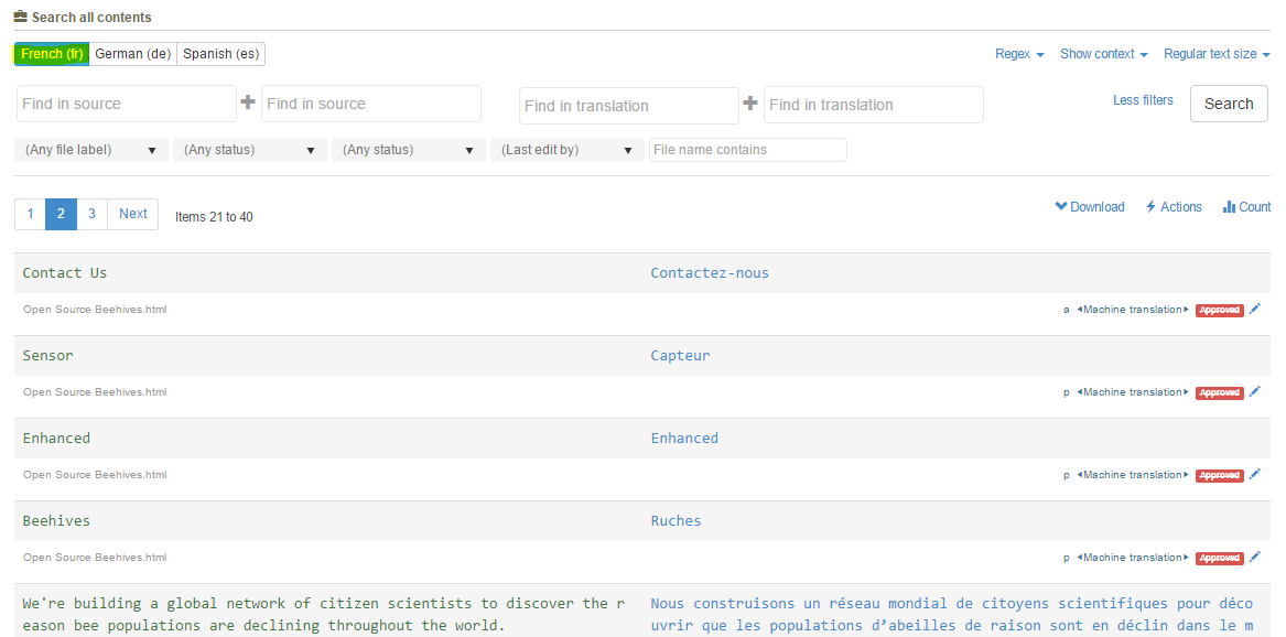 Of course, the Beebox includes its own review tool. Click Quick Search in Beebox to view all French text segments: