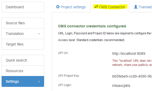 The next step is to configure the URL(s) of the CMS or web site being translated: