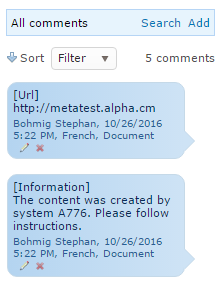 One comment is added per meta data. The comment shows the property title in square brackets.