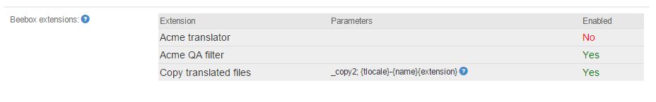 For example, if your extension copies translated files then the parameter may be the target directory and the Beebox administrator can change the path from one project to the next.