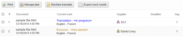 Looking into Wordbee Translator, we can see a translation and a revision job. The translation is already in progress: