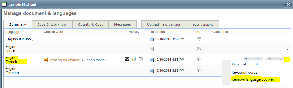 In a related topic we described that removing a source file from the Beebox automatically cancels workflow and jobs in Wordbee Translator: