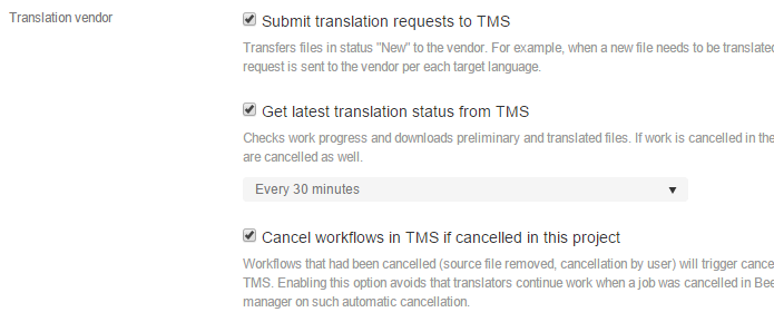 - Cancel workflows: If you cancel work in Beebox you can choose to cancel the work in the TMS as well.