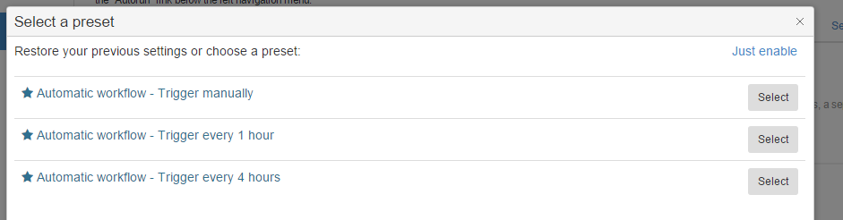When you edit the settings you can click Select a preset to choose from common automation scenarios: