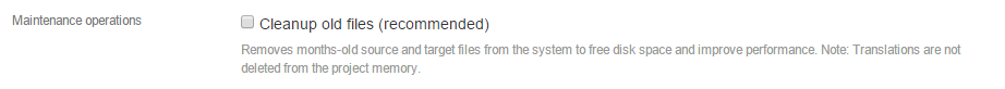 The following option simply deletes files older than a few months from disk. The translated content is NOT removed from the project memory.