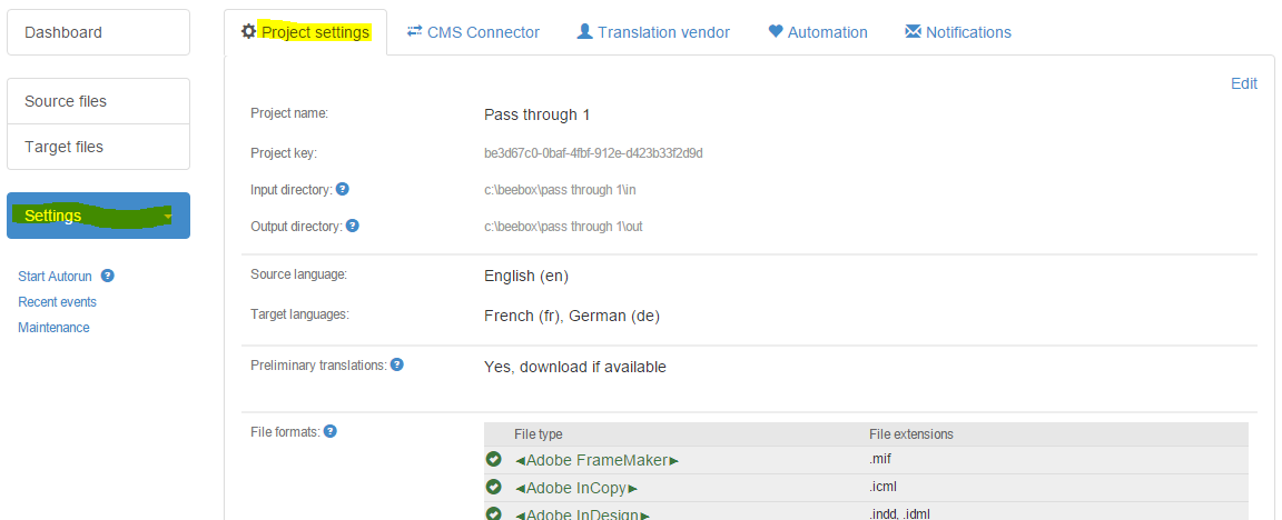Please note that files are directly sent to Wordbee Translator. No text processing of any kind takes place in the Beebox.