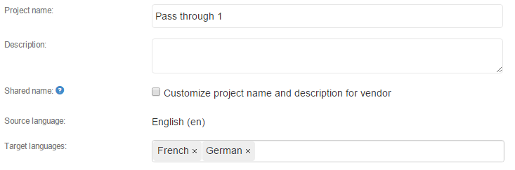 - Shared name: Only used if you link this project to Wordbee Translator. The name shown inside this TMS instead of the project name. Use to hide the internally used project name.