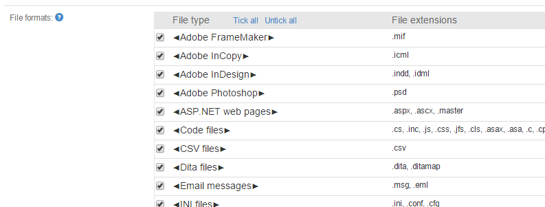 This section lets you specify the file types that are processed in this project. Any other files will be simply disregarded.
