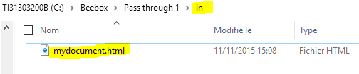 Let us now delete the original file from the project "in" directory. We also click Start Autorun to make the Beebox take into account the file deletion.