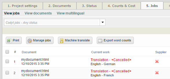 Inside Wordbee Translator, workflows are automatically cancelled too: