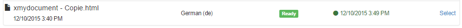 In the example below, we see a source file that has been successfully translated into French. The Ready status means that the translated file is downloaded from Wordbee Translator.