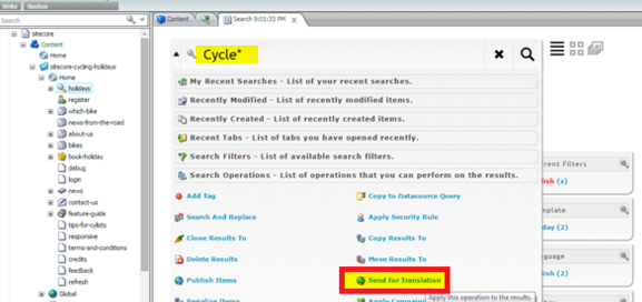 Using search tools to send PIM or other content for translation.