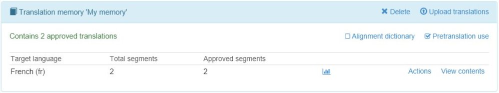 In addition you can upload additional memories to enhance the pretranslation. This is useful if you have legacy memories.