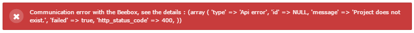 The connector cannot find the project in the Beebox. The project key is not (or no longer) correct.