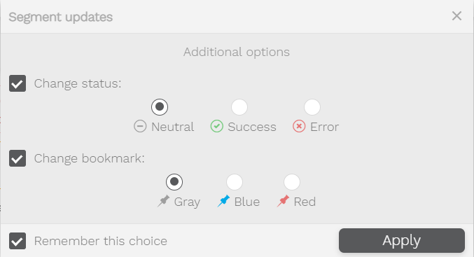 Change Status | Set or change the status of segments |