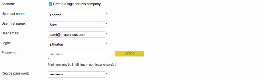 Next, if you want the supplier to have access to the client portal for conducting work, etc. then you will need to create a login and password for the supplier. Initially this would be a login for an individual (freelance translator) or the primary contact (translation agency, etc.).