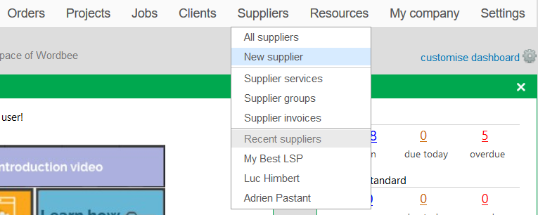 A supplier is any company or individual who provides services on behalf of your company. For example, this could be a freelance translator or a translation agency who performs work on your projects such as translation, revision, and so on. Essentially an external supplier (user) is any individual who will be assigned jobs in the system.