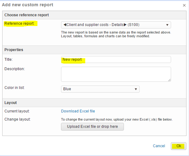 Under Reference report select an existing report that you want to customize; this will be the base for your new report. Give it a Title and then click OK.