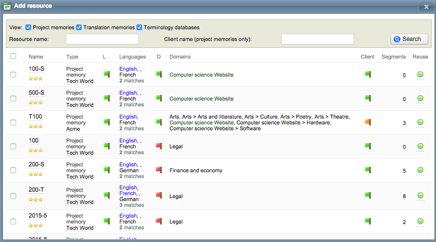 Remember that the order of your resource selection is important, because Wordbee will use this ranking to do the matching process when you start translating.
