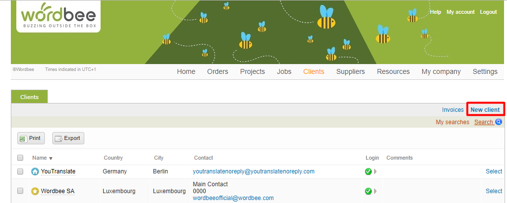 - Translation Memories - Displays any translation memories for the client. If a new client, then a default translation memory will be the only item shown here.