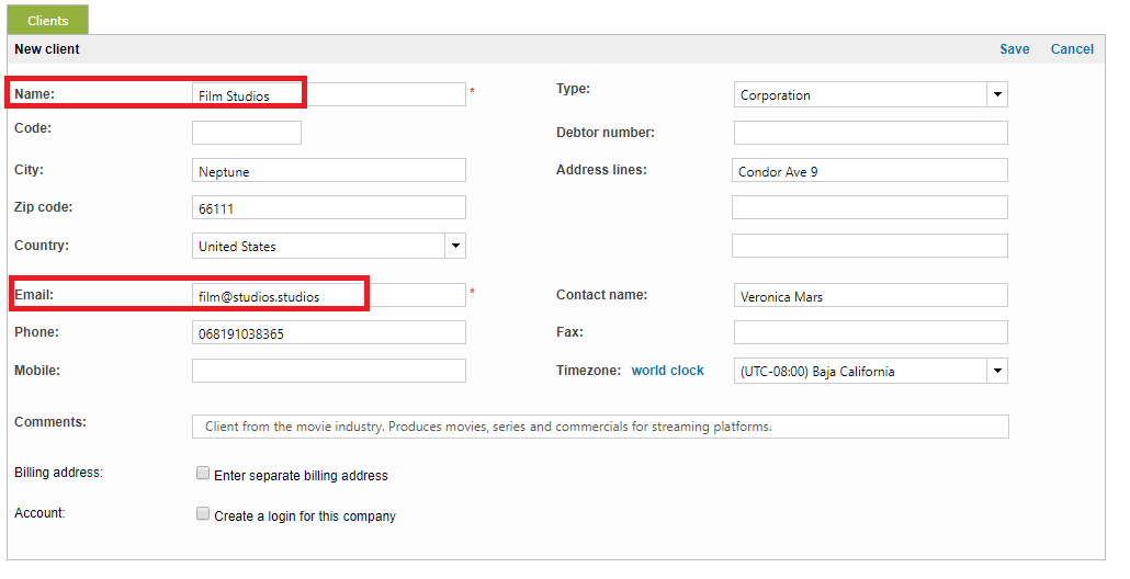 - Last/First Name - Should be the client's main contact or the freelancer's name.