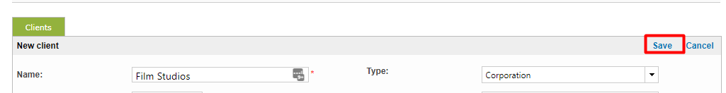 Once all information has been entered, click on Save in the upper right corner to finish adding the client to the system.