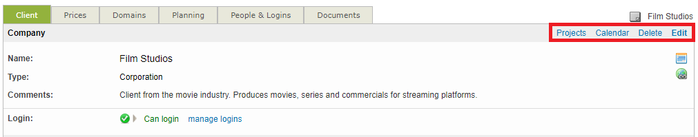 This information may be changed by clicking on Edit in the upper right corner when viewing the client.