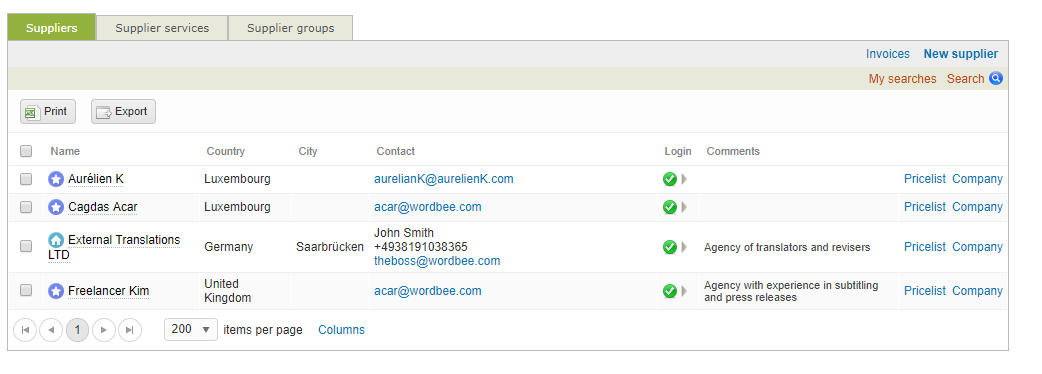 - External Manager - Suitable when there is a person in the vendor side who should take responsibility of the dispatching and back delivery of the results to the client. For example, Managers in LSPs.