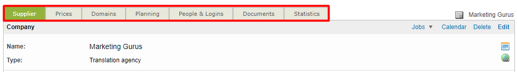 Additionally, you can configure the type of company by using the Type drop-down menu. Company types are helpful when identifying the supplier in the system, specially as part of a supplier group. Additionally, each company type is highlighted with a specific icon.