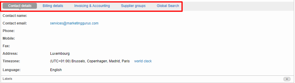 - Supplier Tab - View basic client information, contact details, billing information, etc.